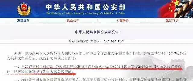 2017版外國人永久居留身份證已開始使用,6月16日起,公安部對經(jīng)批準(zhǔn)取得在華永久居留資格的外國人簽發(fā)2017版外國人永久居留身份證,同時停止簽發(fā)現(xiàn)行外國人永久居留證。