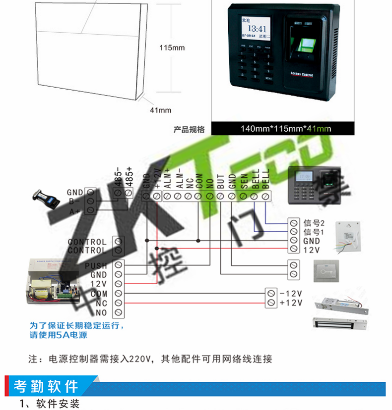 · 軟件 : 支持實時監測門禁軟件,指紋讀卡器軟件和考勤軟件等