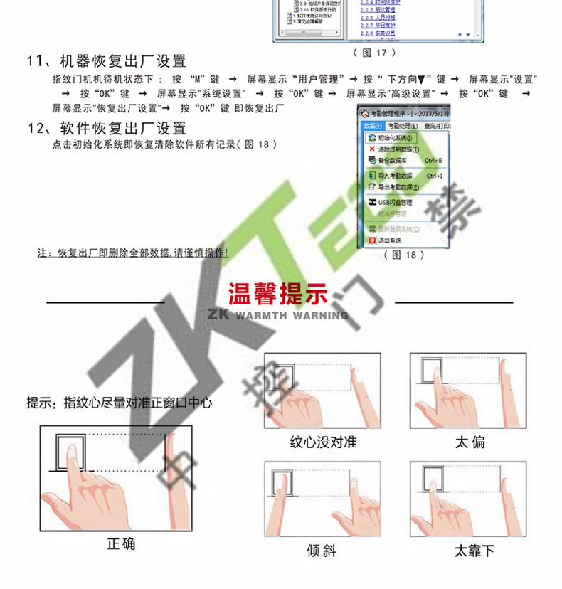 · 平臺 : Intel32位處理器,2007版ZKFinger V8.0版指紋算法,ZEM500主板
