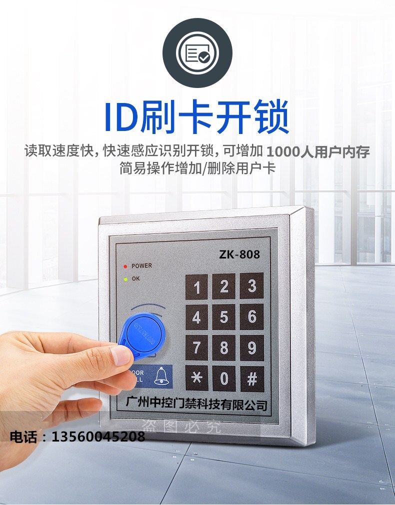 中控密碼門(mén)鎖 ID刷卡門(mén)禁ZK-808