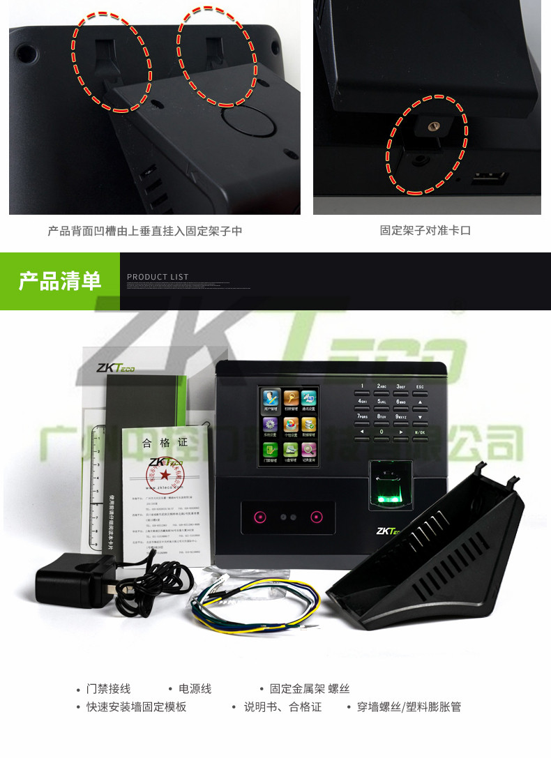 智能密碼門禁UF200特點: 面部容量:200張 指紋容量:400枚 記錄容量:50000條 顯示屏:2.8寸彩屏 考勤速度:小于0.5秒 面部算法:ZKFace VX7.0 U盤功能:U盤上傳下載 考勤照片容量:3000張 通訊方式:USB-Client TCP/IP 其它功能:定時響鈴,9位碼、SSR,簡單門禁功能 輸入法:T9輸入法 電源規(guī)格:DC5V 1A 使用濕度:0%-45% 使用溫度:20°C-60°C 尺寸:168(L)x151.5(W)x30(H)mm