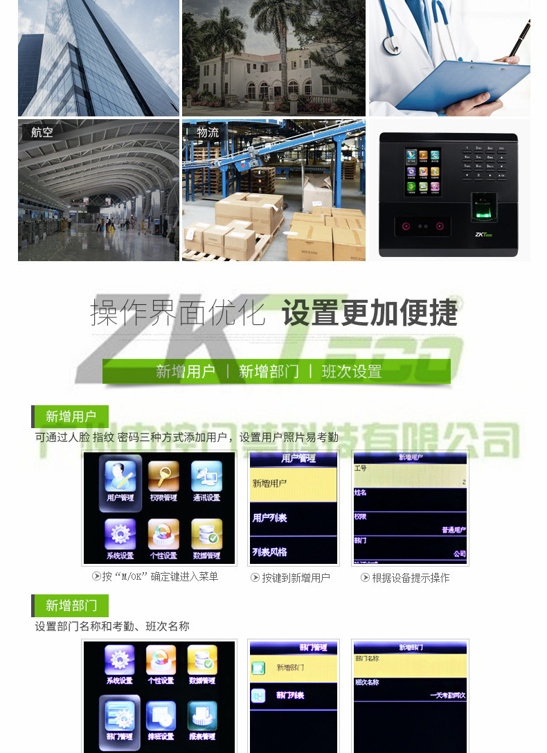 指紋打卡機UF200產(chǎn)品介紹: 1.歐式流線型設計,觸摸與微動按鍵并存,面部、密碼、指紋多種識別方式為一體,高品質(zhì)、多功能的完美體現(xiàn)。 2.面部容量200張,指紋容量400枚。 3.TCP/IP、U盤通訊方式。 4.自助式考勤功能。